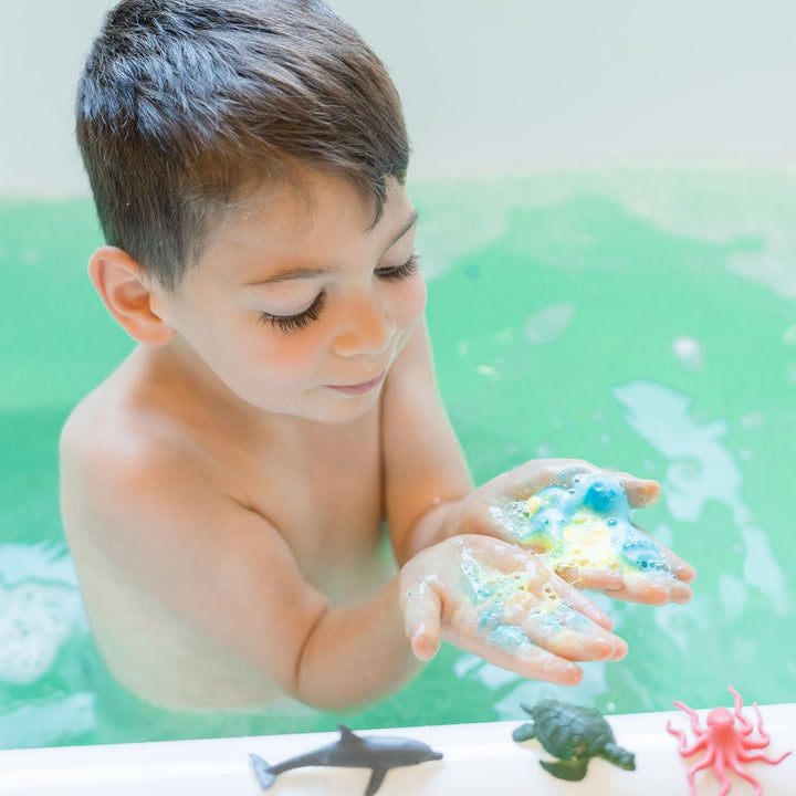 Funky Fish Food is a skin-friendly foaming bath salt that will turn the bathtub into the most colourful ocean in the world! As the droplets rise to the top, delight in the beautiful patterns they create!