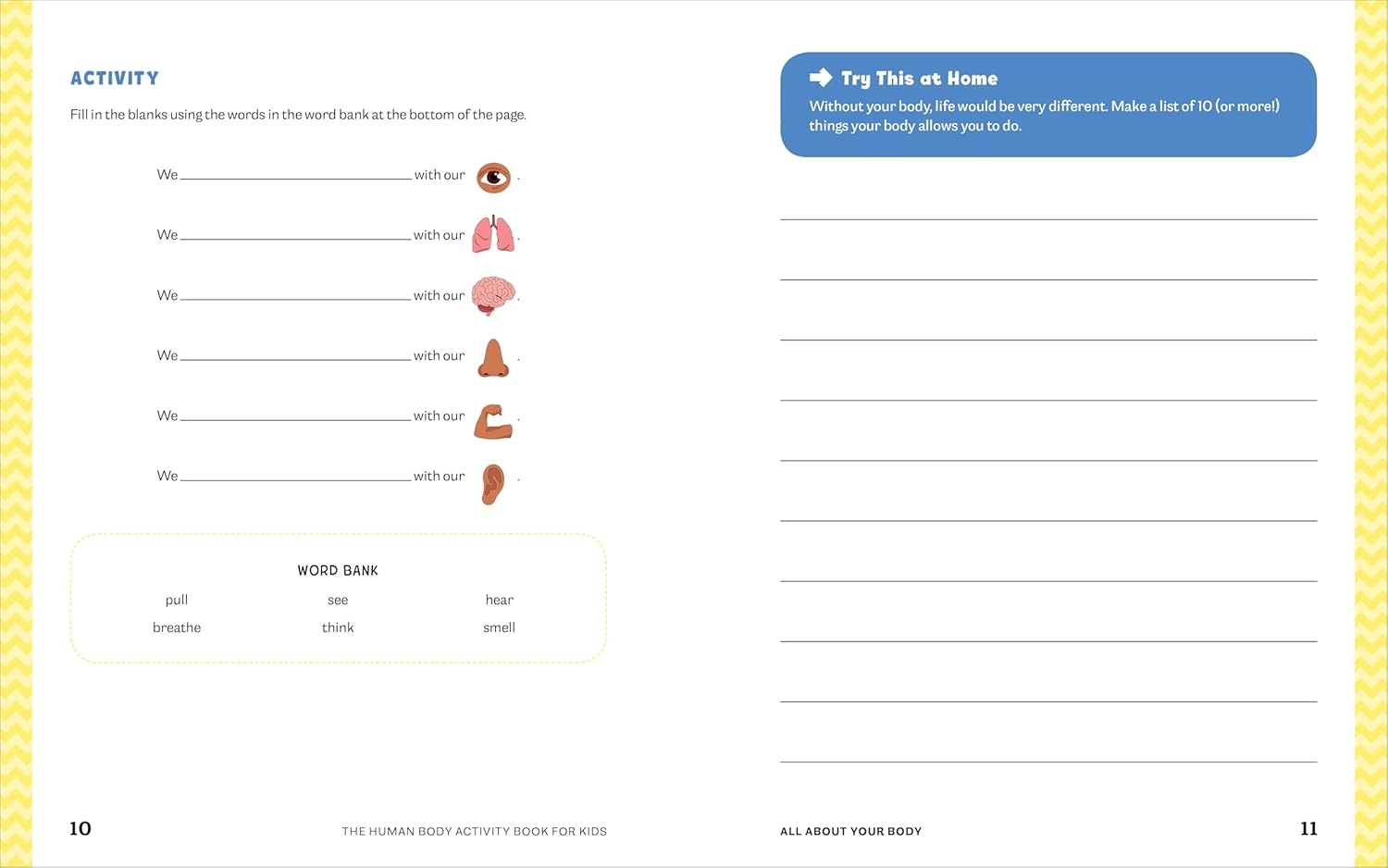 From teeth to eyes and ears to skin and bones, there's a lot to discover about the human body! Featuring crosswords, mazes, and more, the Human Body Activity Book for Kids is bursting with all kinds of activities to help kids understand how their bodies work, and how to keep them healthy and strong.