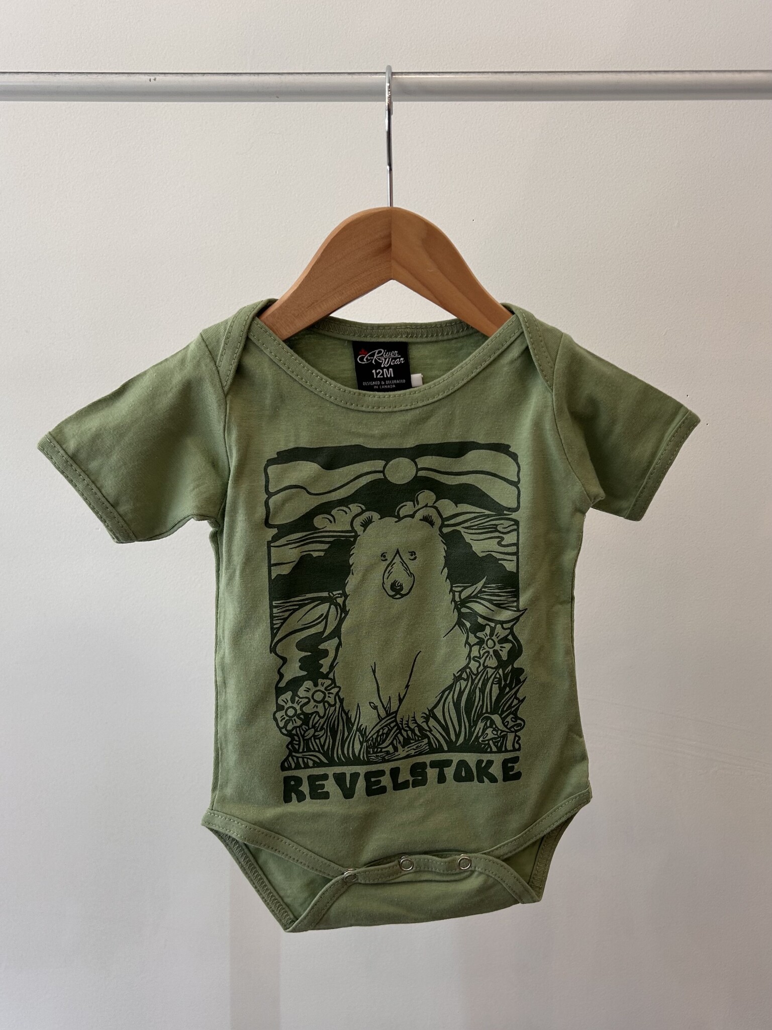 Cozy, soft, and full of mountain‑town charm. Our Revelstoke baby onesies are made from 100% cotton and printed in earthy, natural tones.