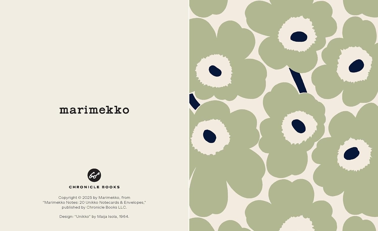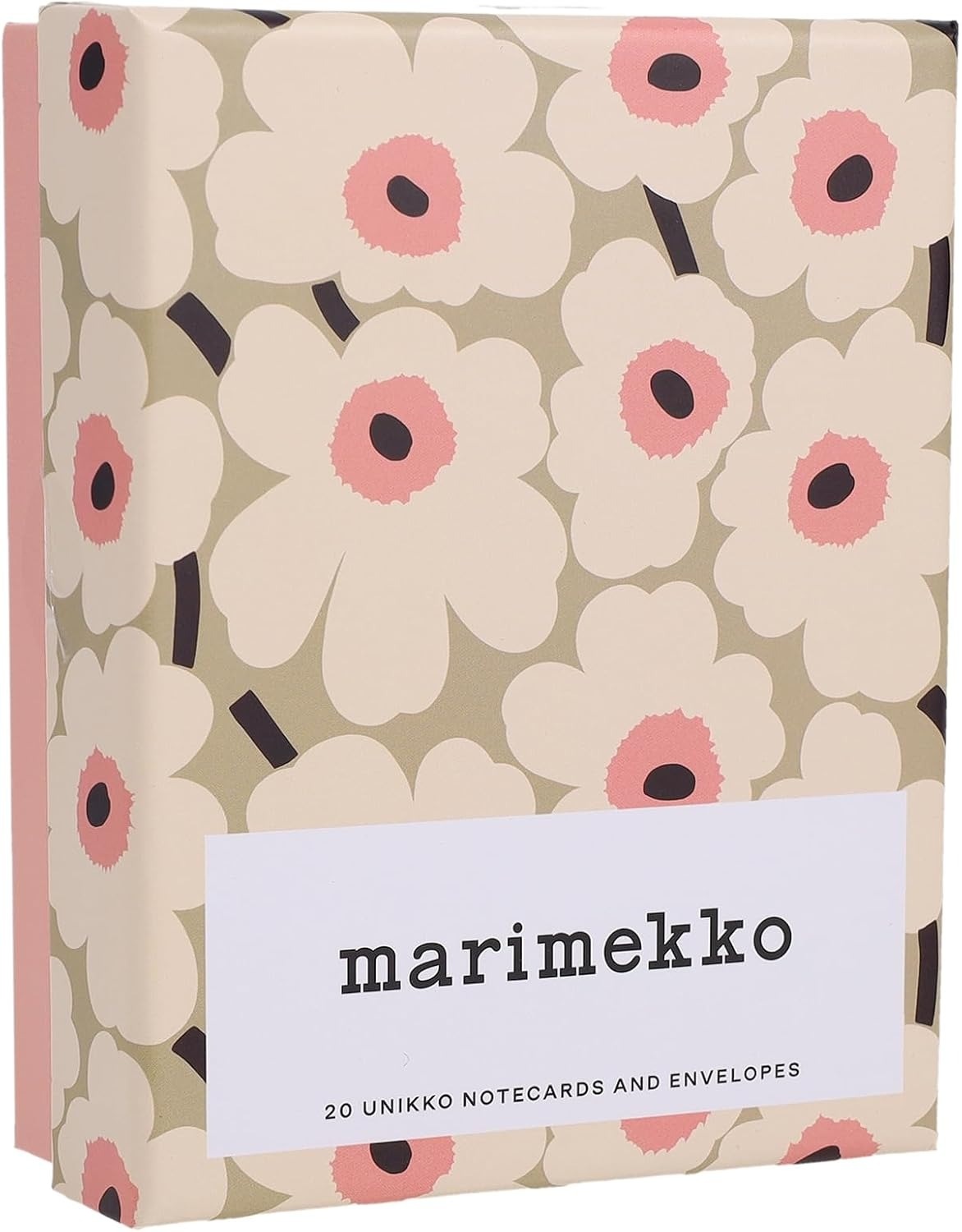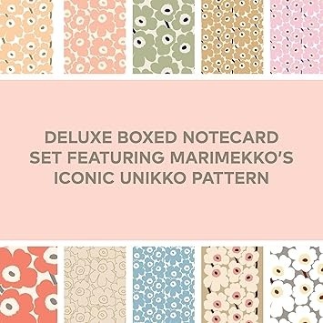 - MARIMEKKO NOTECARD SET: The ultimate in stationery style. Set of 20 assorted notecards featuring Marimekko’s most iconic pattern, Unikko, in a gorgeous pastel color palette. These petite blank notes are perfect for any message or greeting.