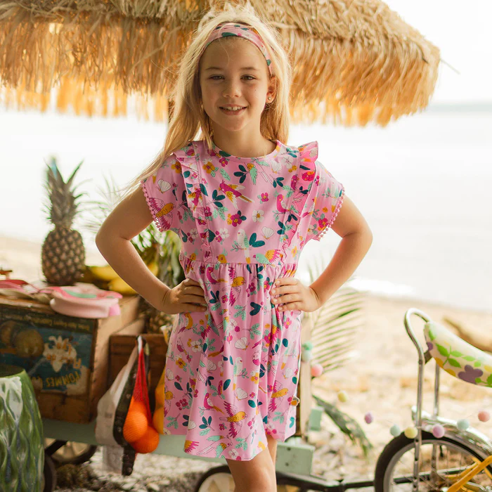 Pink Dress with Tropical Pattern Child
